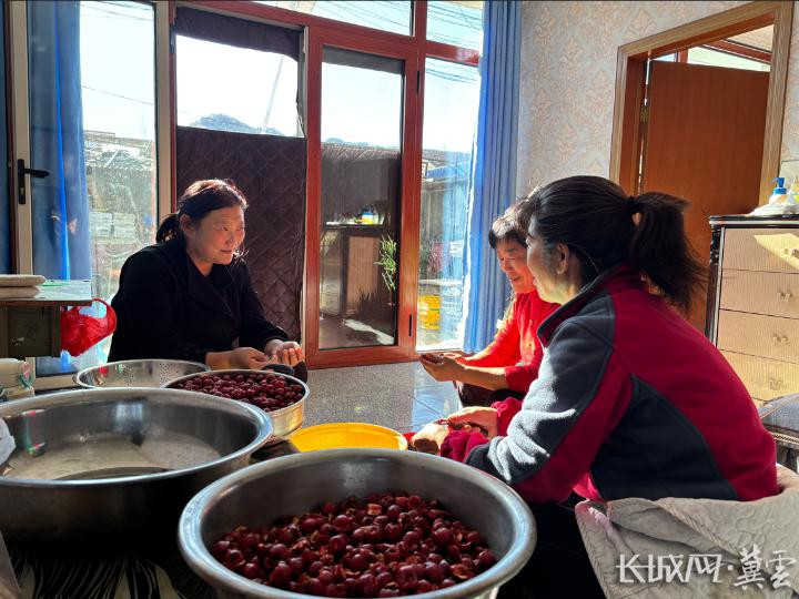 张淑云(左一)在村民家中询问过冬取暖情况。